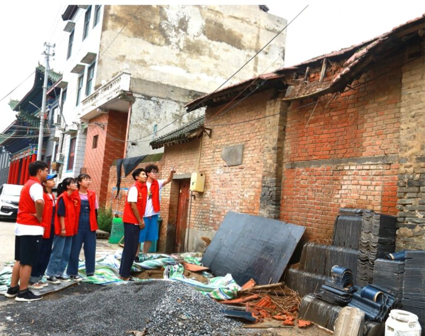 赵霄同学帮助受灾工厂清理淤泥,帮助受灾农户生火、打扫庭院,并为调查受灾情况贡献自己的一份力量。