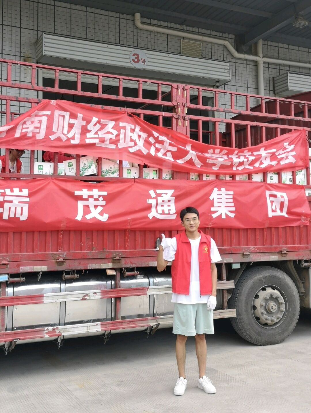 张益宁同学于7月24日在郑州北三环参加志愿服务活动,接收、搬运来自厦门河南商会援助救援的物资。