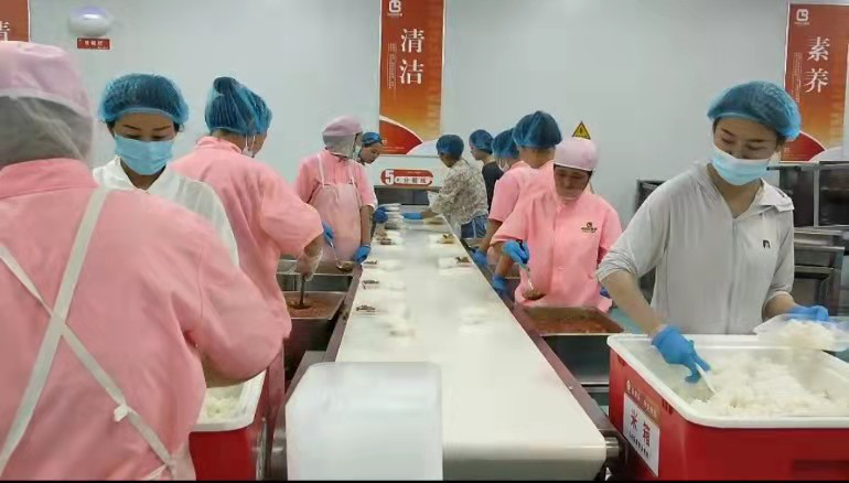 乔文君同学于7月25日在河南省乐贝乐食品工业园参与分餐及配送工作,切实保障受灾群众的后勤工作。