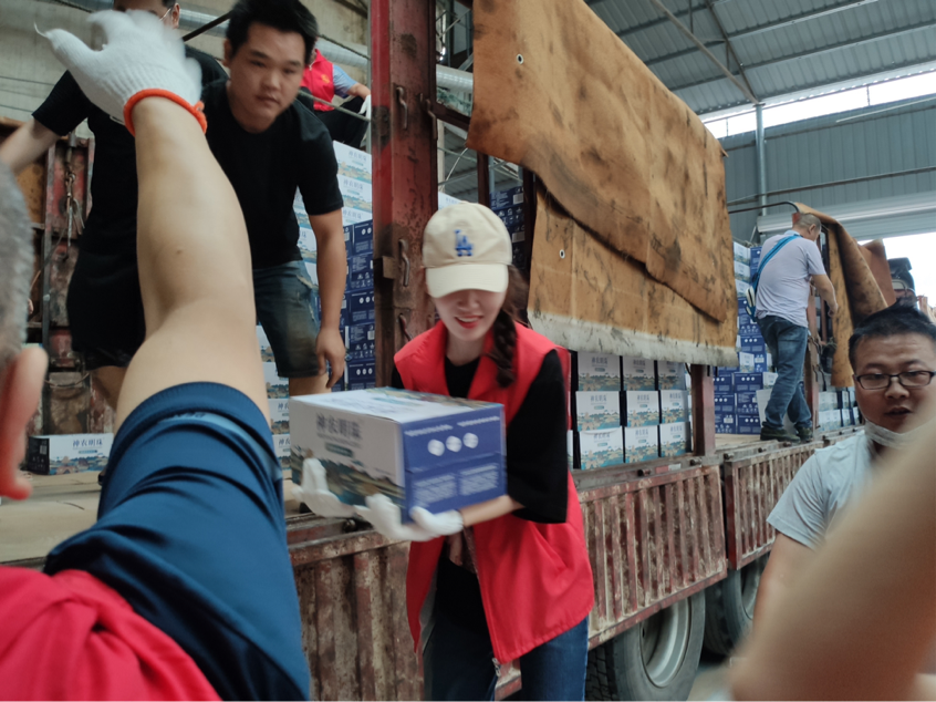 张思梦同学深入社区,积极开展救援物资的装卸与分配的志愿工作,不畏炎热、不分昼夜,保障救援物资尽快到达需要的人面前。