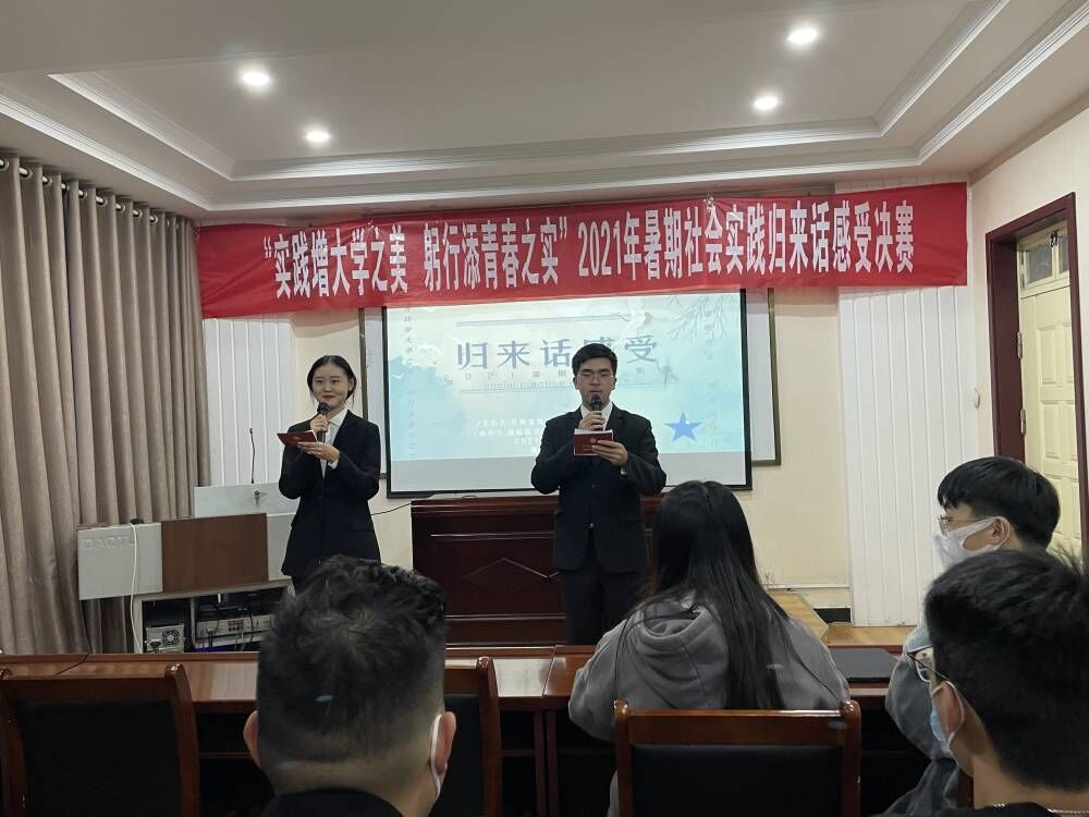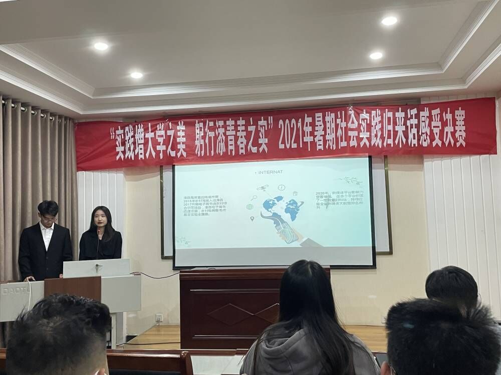 为进一步加强老员工社会实践活动的影响力与号召力,太阳成集团tyc122ccvip‍‍‍‍‍‍‍‍于11月8日在建树楼603举行了“实践增大学之美,躬行添青春之实”2021年暑期社会实践归来话感受决赛,由太阳成集团tyc122ccvip‍‍‍‍‍‍‍‍员工主席团成员主持及各参赛团队参与。