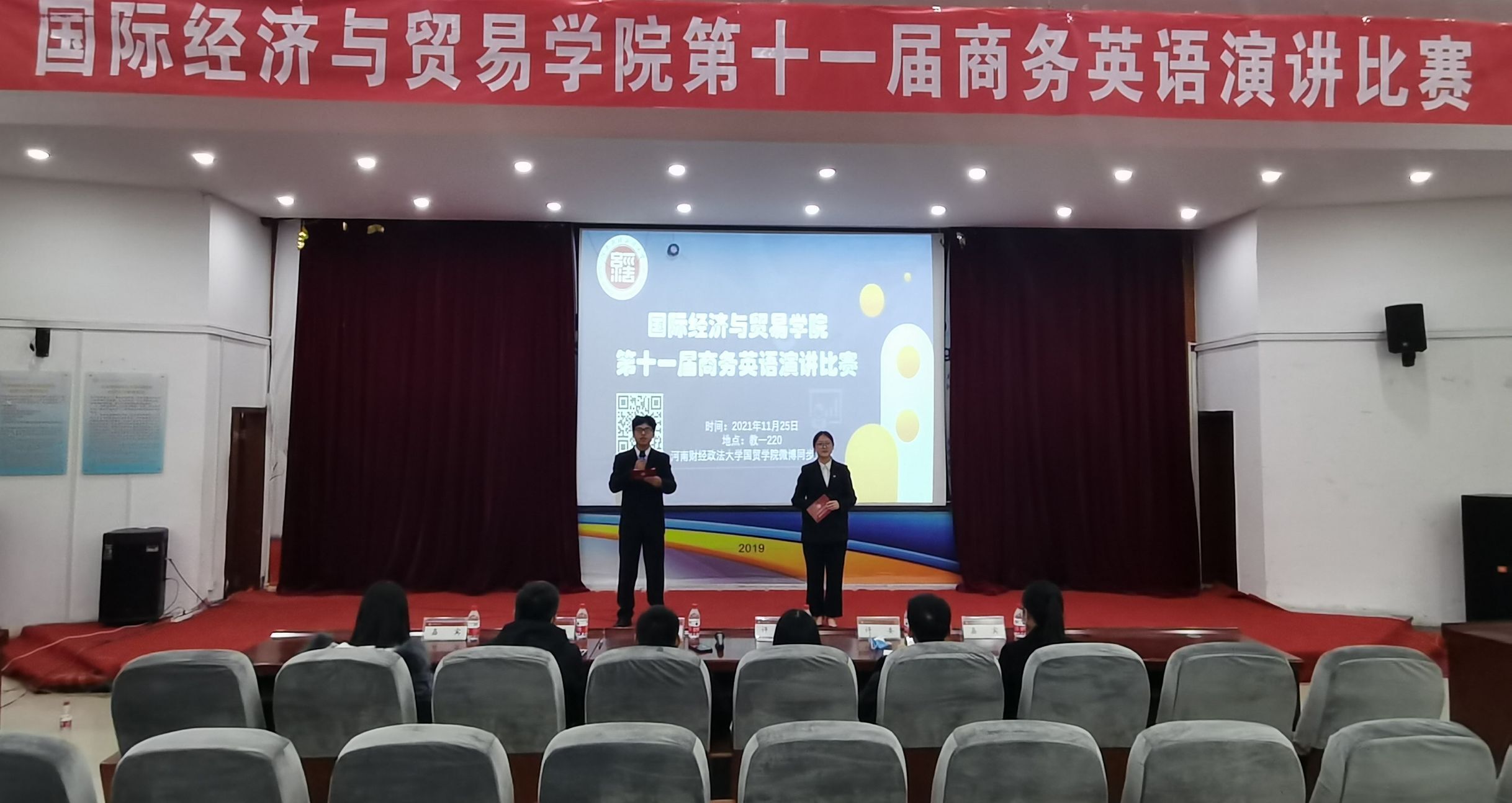 为将英语能力与专业理论知识、社会实践能力相结合,公司于11月25日在第一教学楼220报告厅举办了第十一届商务英语比赛决赛。学院副经理任保显,教师代表蔡静静、张相伟、李者聪,团委副书记李陶及辅导员张婉莹作为评委嘉宾,共同出席了此次比赛。