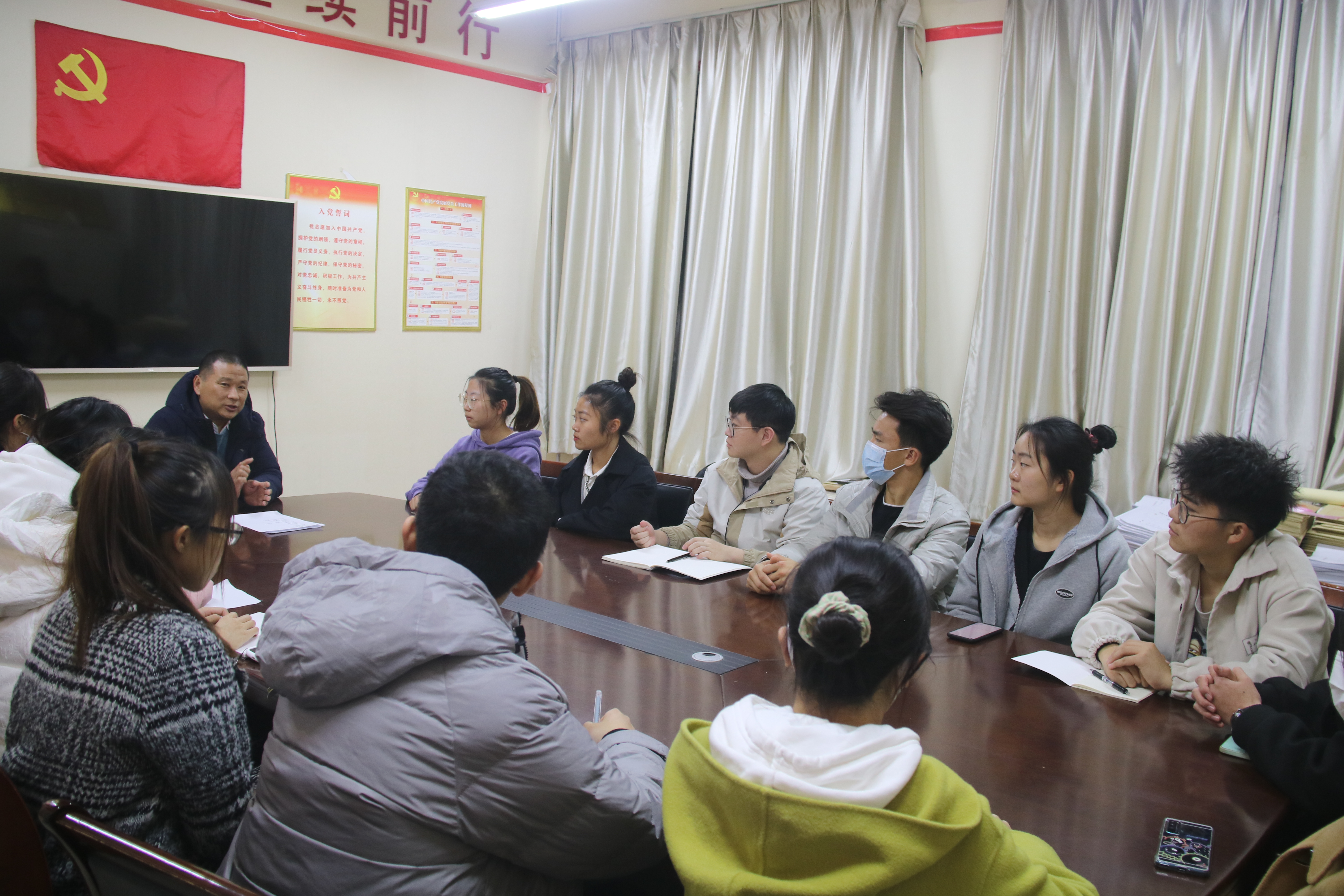 会议开始,李怀强首先谈到创新创业的重要性,指出创新对于国家来说是引领发展的第一动力,带动新技术、新产品、新业态、新模式不断涌现,极大促进经济新动能的发展。其次,对于老员工而言,创新创业能够让员工们灵活就业,让梦想同奋斗相融合。随后,李怀强提出在大众创业,万众创新的时代洪流之下,每个人都应该树立创新创业的思想,并用自己多年来参与创新比赛的经验为同学们打开思路,鼓励他们积极参与各项创新创业比赛,他认为作为新时代的老员工不应当只埋头学习,还应当关注社会民生、提高解决社会问题的能力和水平。最后,李怀强与同学们展开讨论,员工在互动区积极参与、热情讨论,用心体会,深刻了解了“挑战杯”系列竞赛对老员工成才发展的重要性,展现出对挑战杯”赛事的极大兴趣,李怀强解答了同学们关于创新创业方面的疑惑,为他们提供科学的指导与建议。
