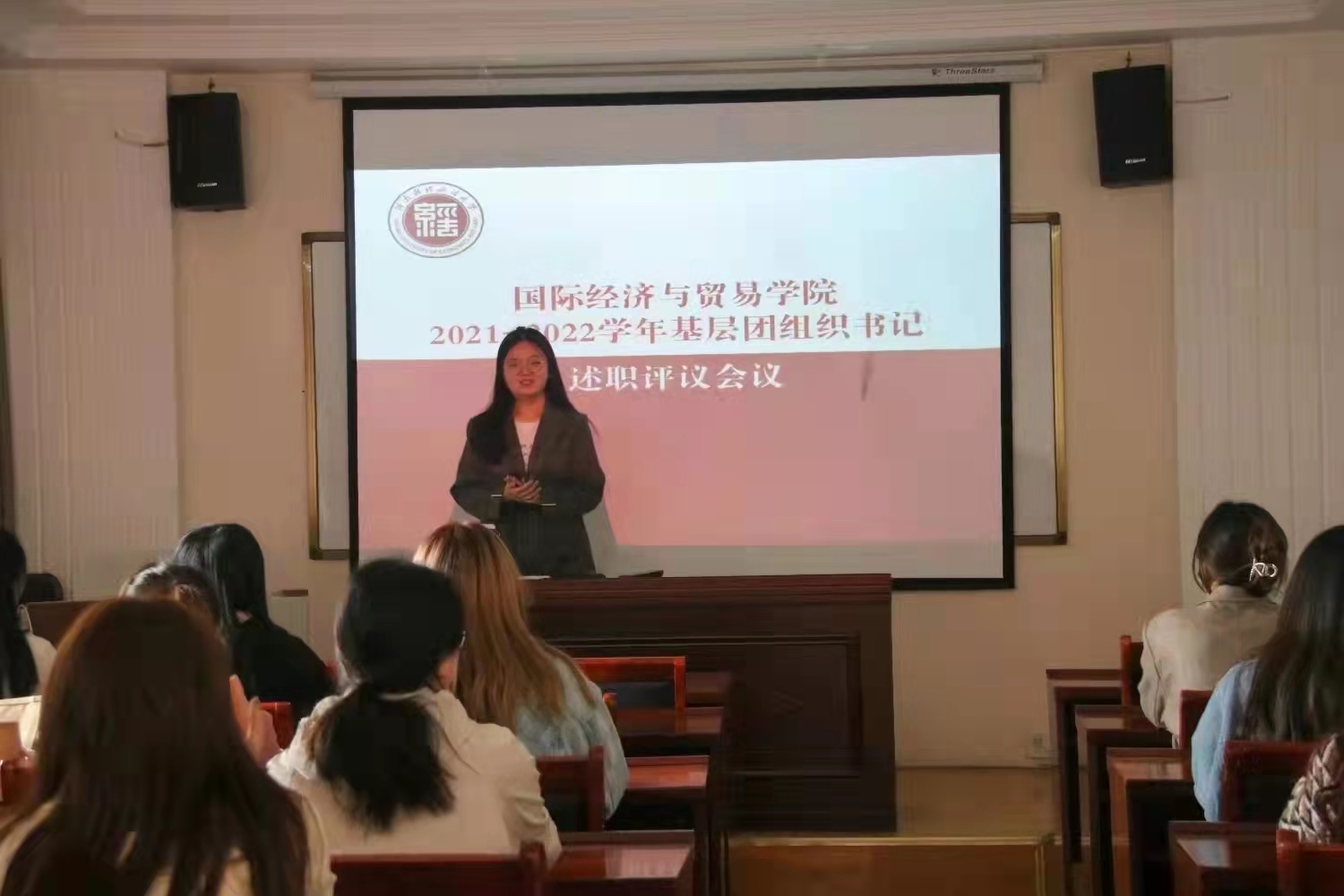 首先,张婉莹对上一年度各团支书的工作表达了赞美与肯定,并指出此次述职会议的目的,即从过去的工作中总结经验,为下一阶段开拓进步奠定坚实基础。此外,她再次强调团支书在团支部中领头羊的作用,并从思想建设、作风建设、纪律建设等方面对团支书提出了更为严格的要求。在对近期疫情防控、班级活动等工作进行布置安排后,张婉莹宣布述职会议正式开始。由20级、21级团支书依次上台进行工作述职及汇报展示,通过回顾找到工作中的成绩与不足,通过展望找寻提升方向。述职完毕,张婉莹对汇报情况进行总结,对团支书认真准备的态度、为支部倾情奉献的精神表达了充分的肯定,但也指出述职报告中反映出的一些问题,并对问题进行简要分析,提出改进办法。最后,张婉莹对全体团支书提出新一学期的工作要求,即团结一致、积极向上,在接下来的工作中做实做细,充分发挥榜样带头作用,共同引领好团支部的建设与发展,为学院工作增光添彩。