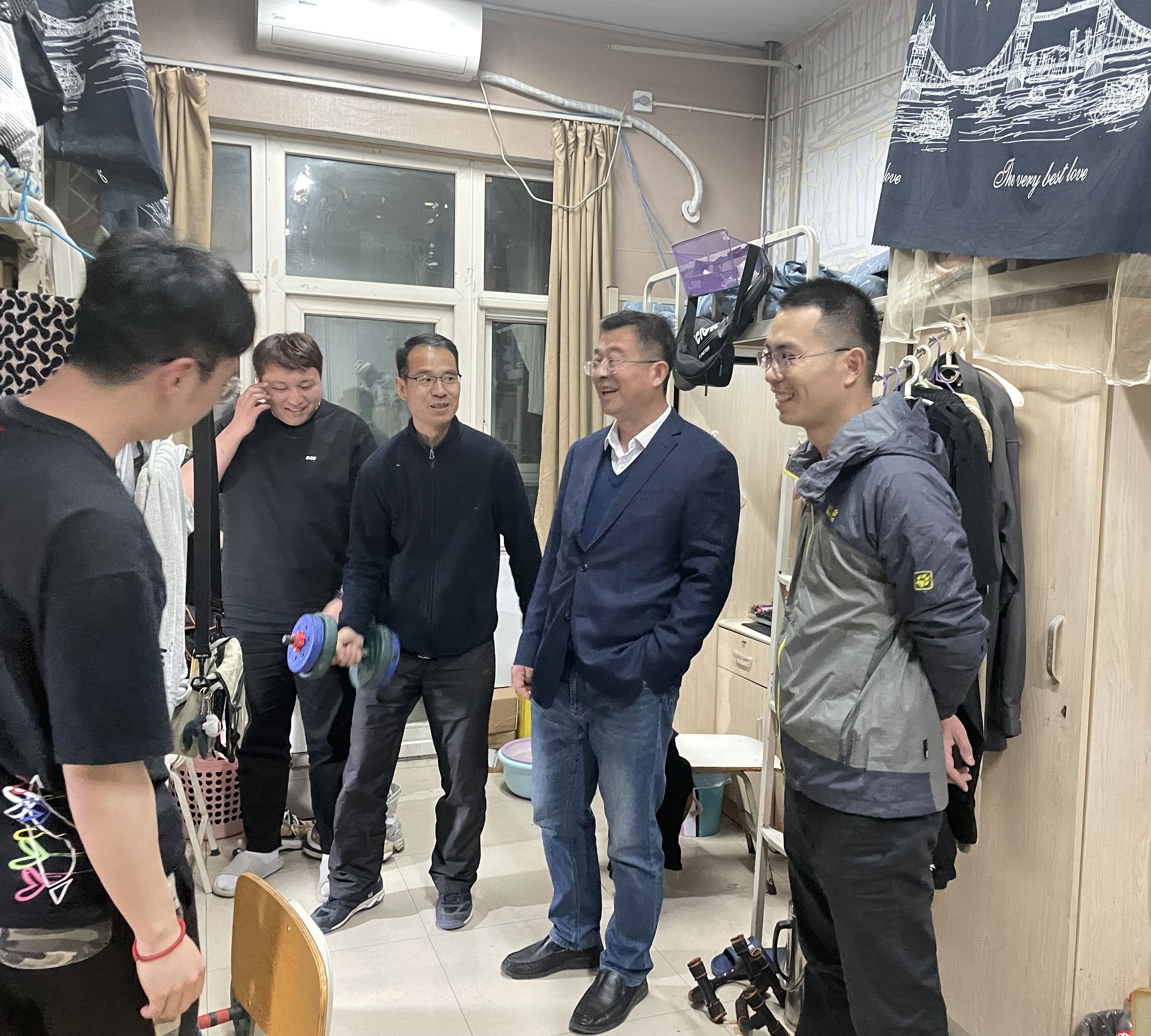 走访过程中,王洪庆讲述北京长峰医院火灾的深刻教训,提醒员工注意宿舍用电安全和防火安全,强调在毕业前仍要严格遵守校规校纪,自觉提高宿舍安全与防火意识。