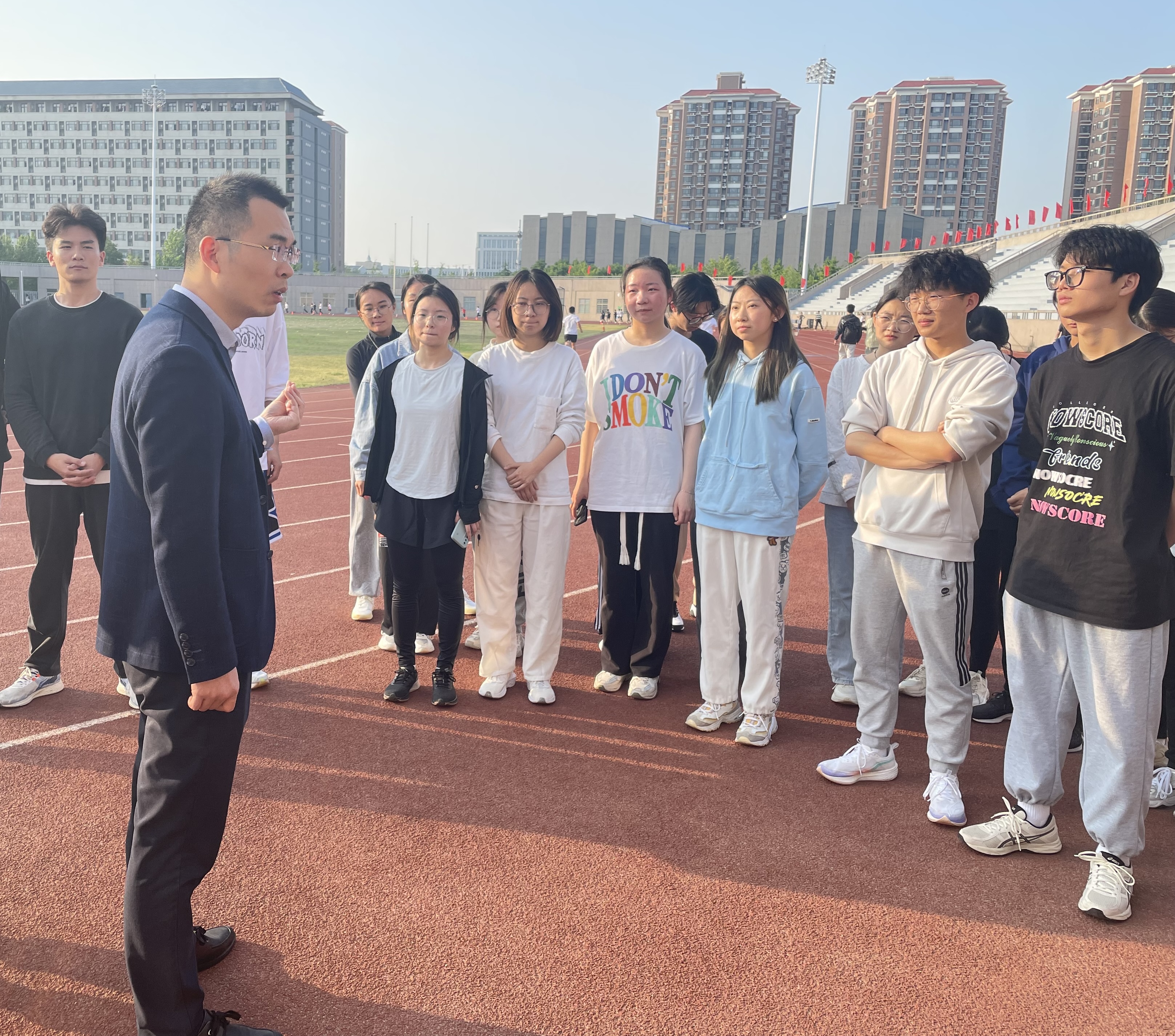 在校运动会即将到来之际,为充分调动运动员积极性,保障训练及比赛期间各项工作有序进行,4月25日下午,公司在东操场开展校运动会赛前动员大会,院团委书记田红彬和全体员工运动员共同参加。
