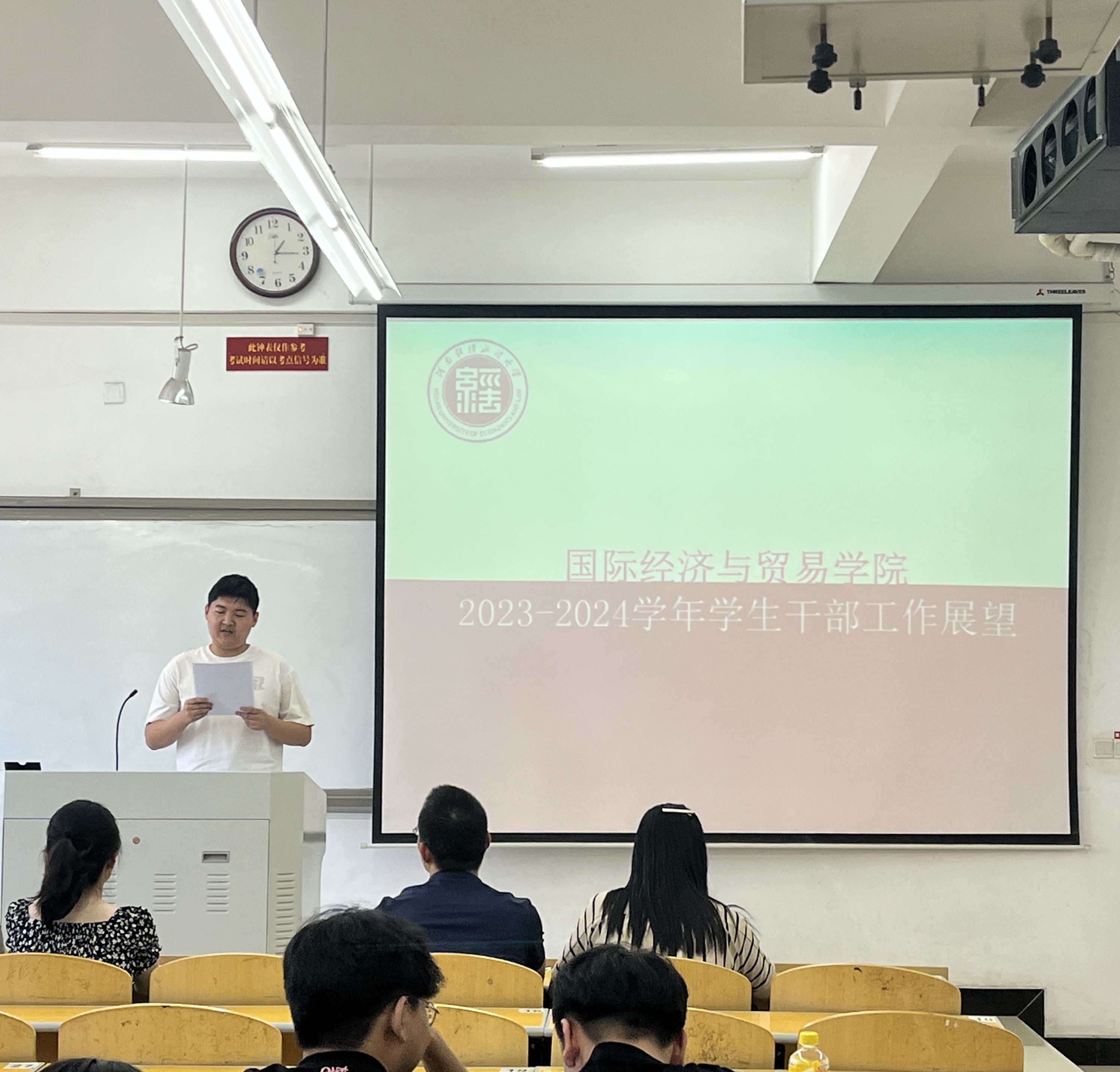 会议开始,首先由2022-2023学年员工干部代表分别发表述职报告,汇报了本学年的工作完成情况,并总结了工作经验,为新一学年员工干部工作提供了积极有益的建议。随后,2023-2024学年新任员工团委副书记刘一震代表新学年员工干部发表演讲,提出对未来工作的展望与规划,坚定了为学院认真工作的信心与决心。全部汇报结束后,由田红彬对学院员工工作作总结发言,期待新一届员工干部接续努力,再创辉煌,为学院发展贡献新的青春力量。最后,学院教师为2022-2023学年全体员工干部发放聘书并合影留念。
