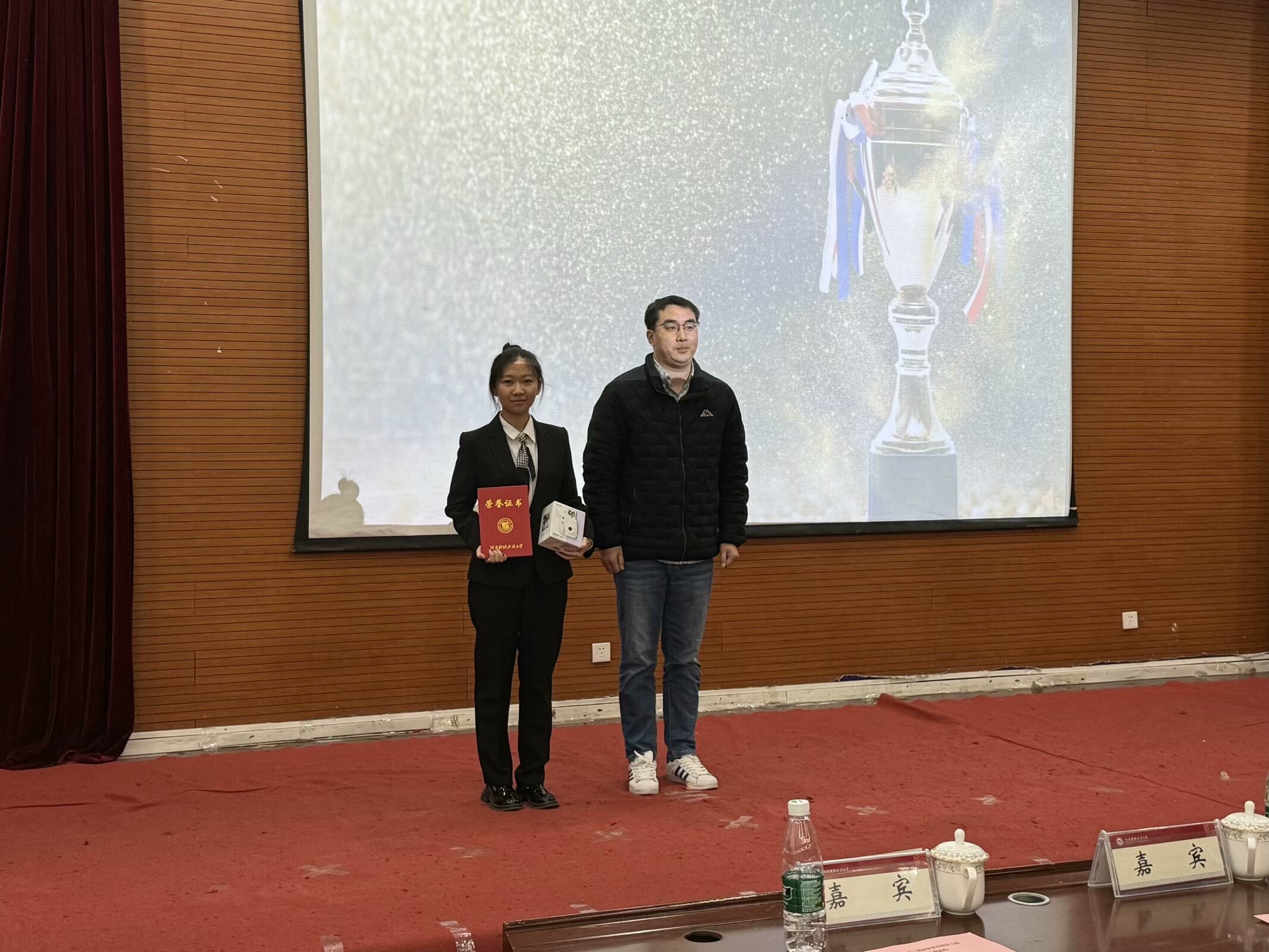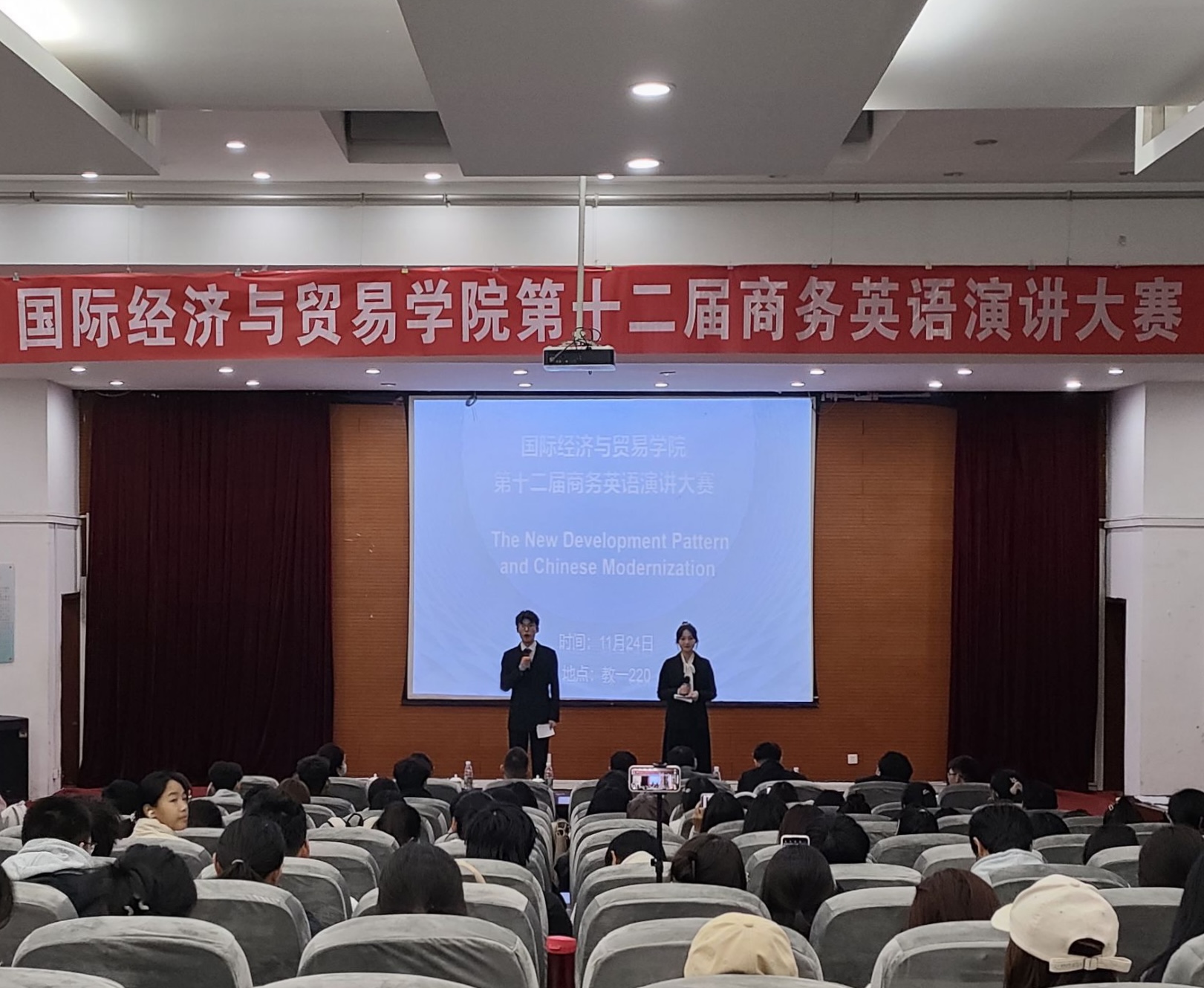 本次比赛的主题为“The New Development Pattern and Chinese Modernization”。比赛开始,主持人首先介绍了经过初赛选拔进入决赛的八位选手。参赛选手逐一上台,围绕主题进行演讲,以流利的口语结合精美制作的PPT详细介绍了新发展格局与中国式现代化的涵义与重要意义,指出了构建新发展格局是推进中国式现代化的必由之路,并对评委老师的即兴提问作出了精彩的回答。在中场互动环节,陆续进行了单词王挑战、击鼓传花即兴问答、幸运抽奖等活动,为比赛营造了轻松愉快、热闹有趣的氛围,增强了员工观众的参与感。经过激烈的角逐,最终一等奖花落216班杨梦同学,233班赵奕冲、213班谢鈃雨获得二等奖,221班聂佳鑫、234班周蓬勃、233班畅子丫获得三等奖,大赛圆满结束。