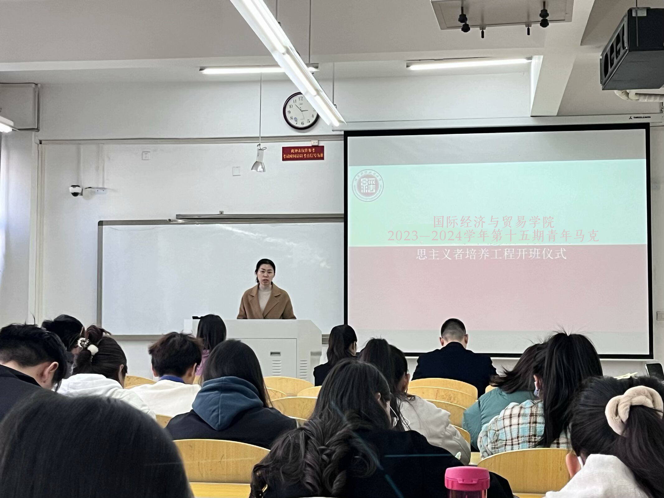 本次培训以“学习新时代精神,践行新时代使命”为主题,旨在培养一批理论扎实、素质过硬的员工骨干队伍。在开班仪式上,李陶首先对参会教师及本期青马工程进行介绍。随后,许薇薇发表讲话并进行授旗仪式,她指出:全体学员要珍惜本次培训学习机会,夯实政治基础,提升理论素养,并将理论学习知识应用于实践,投入到为社会主义事业的奋斗进程中去。最后,田红彬对青马工程的主要内容做了详细的阐述并对学员提出了学习及纪律等方面的具体要求,结束后由李陶宣布第十五期青年马克思主义者培养工程正式启动。
