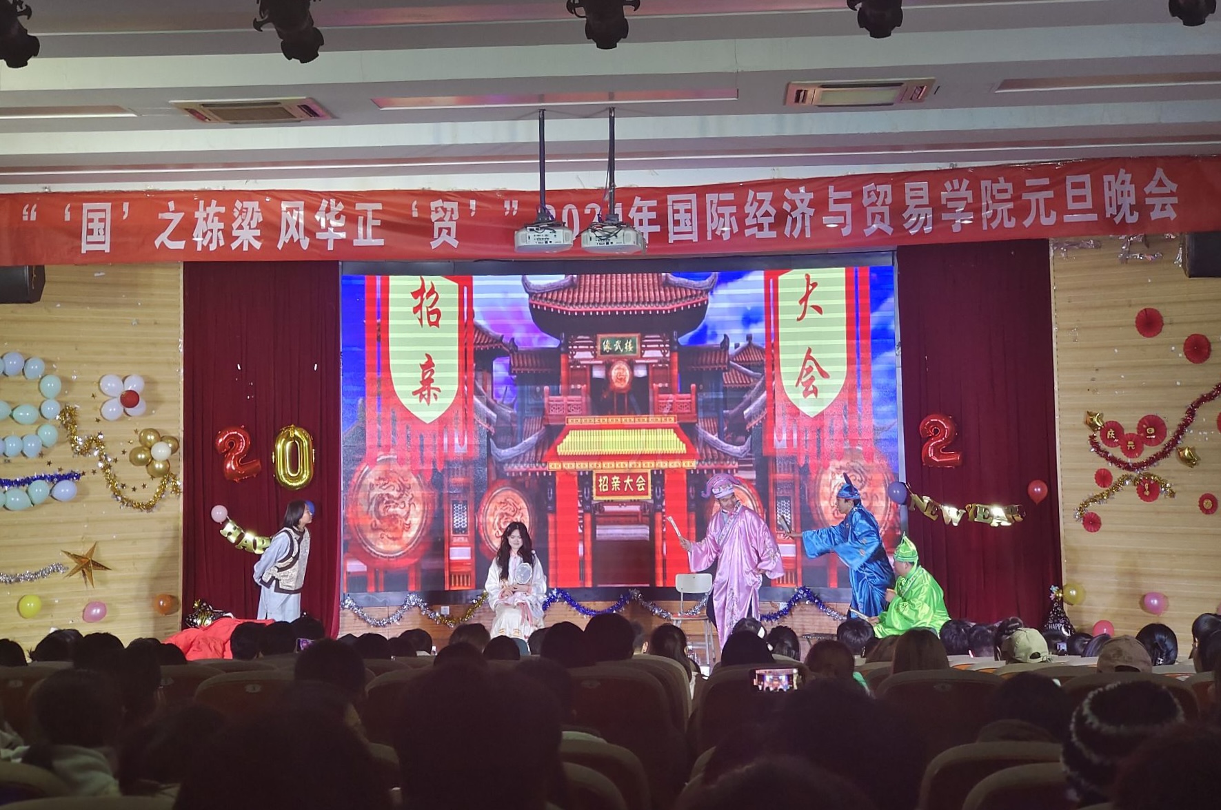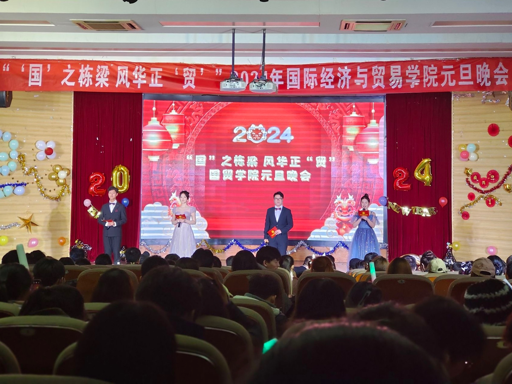 为欢庆元旦的到来,营造欢乐祥和的节日氛围,12月28日晚,太阳成集团tyc122ccvip于教一219报告厅举办“‘国’之栋梁·风华正‘贸’”2024年元旦晚会,公司党委书记彭尚先、党委副书记许薇薇、全体辅导员和部分教师以及公司员工共同参加。